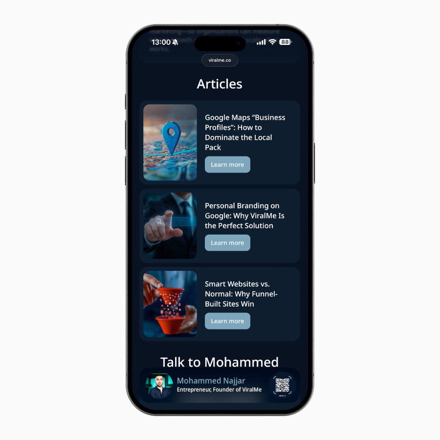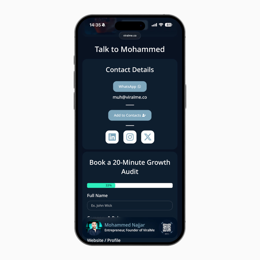 Instant Contact Buttons WhatsApp, call, email—one tap and they reach you.